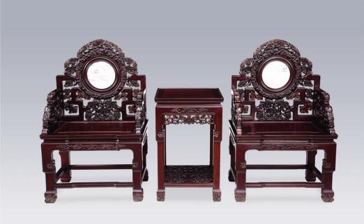 清式雕灵芝太师椅茶几